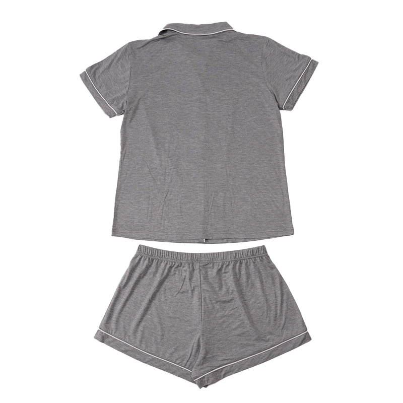 This custom women’s pajama set includes a short-sleeve top and matching shorts, designed for modern loungewear and summer sleepwear collections.